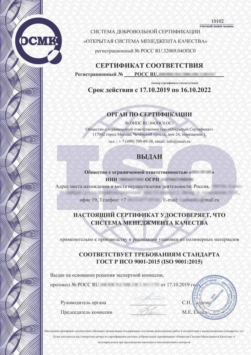 ПОЛУЧИТЬСертификат ISO на 3 года