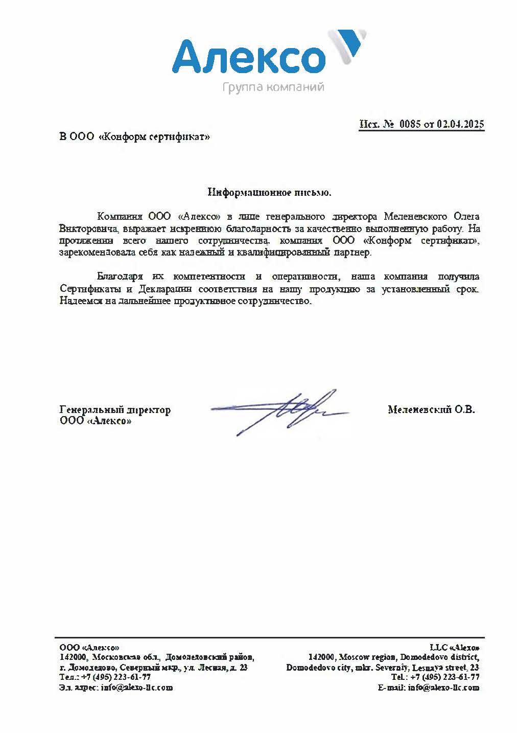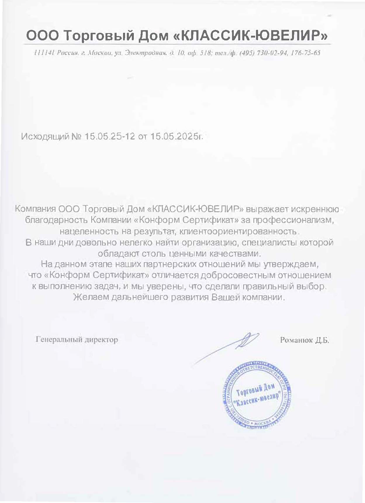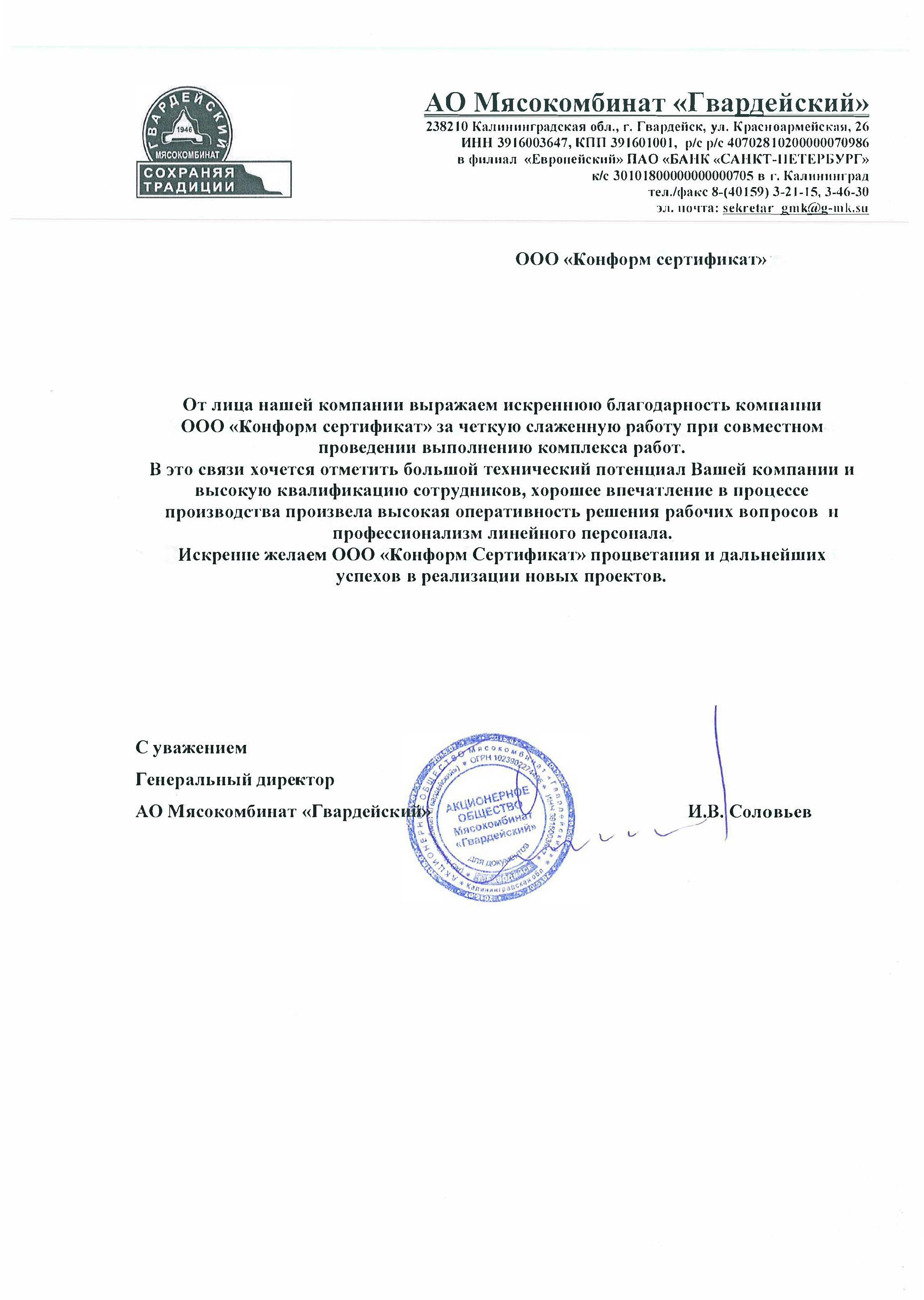Будем очень признательны, если вы пришлете ваши впечатления и пожелания от сотрудничества с нами на почту pr@conformcert.ru